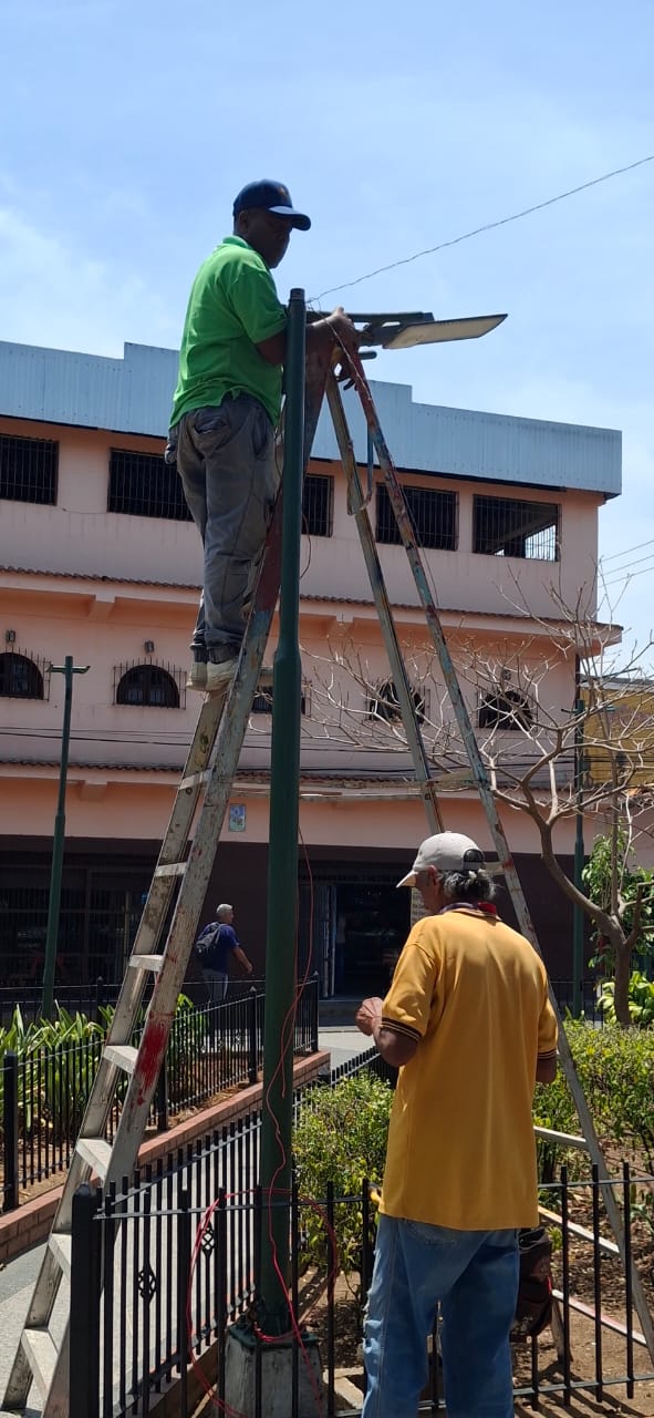 En un trabajo conjunto entre la oficina de Electricidad y Ornato, se realizó la Instalación de ocho lámparas Led en la plaza Simón Bolívar de Santa Lucía.
