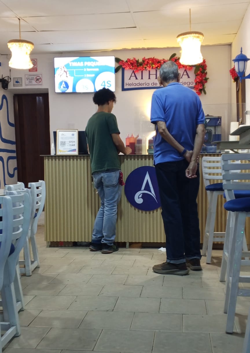 Es importante notar que, si bien el local de Athena Heladería es de tamaño íntimo, lo que en horas pico puede requerir una breve espera, el ambiente y la decoración interior están pensados para maximizar la experiencia. El diseño es moderno y acogedor, creando un buen ambiente que compensa cualquier pequeño tiempo de espera. Este detalle resalta la popularidad del lugar y subraya que la demanda por este delicioso yogurt helado es alta, evidenciando que vale la pena cada minuto de espera.
