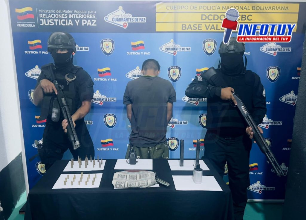 En el marco de labores de saturación y contención de áreas en apoyo a los Cuadrantes de Paz, efectivos del Cuerpo de Policía Nacional Bolivariana (DAET – CONTRA BANDAS – BASE VALLES DEL TUY) realizaron una aprehensión en el Municipio Simón Bolívar, parroquia Yare, específicamente en la zona de Salamanca.